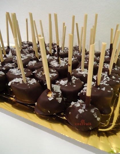 Avellana coberta d’una capa d’exquisida xocolata negra, xocolata amb llet i xocolata blanca.